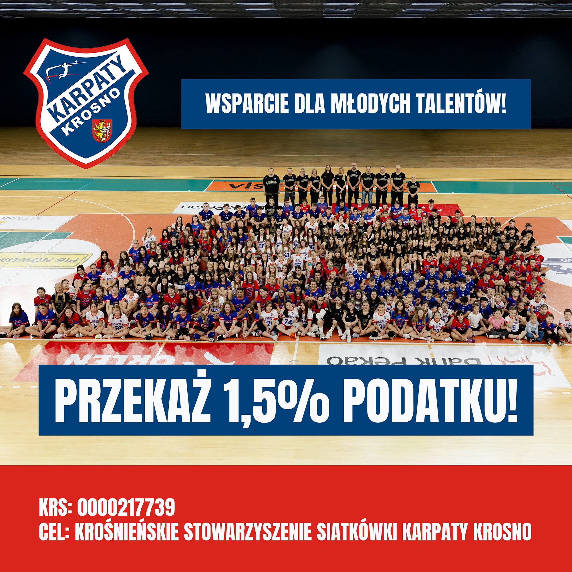 Drodzy Przyjaciele Sportu, zwracamy się z prośbą o wsparcie działalności krośnieńskiej siatkówki poprzez przekazanie 1,5% podatku. Wsparcie przekaż na: Stowarzyszenie Rozwoju Sportu Krośnieńskiego KRS 0000217739 Cel główny: Krośnieńskie Stowarzyszenie Siatkówki Karpaty Krosno Wasze wsparcie to realna pomoc w: - szkoleniu dzieci i młodzieży - organizacji treningów i... 02 marca 2026 Czytaj więcej...
