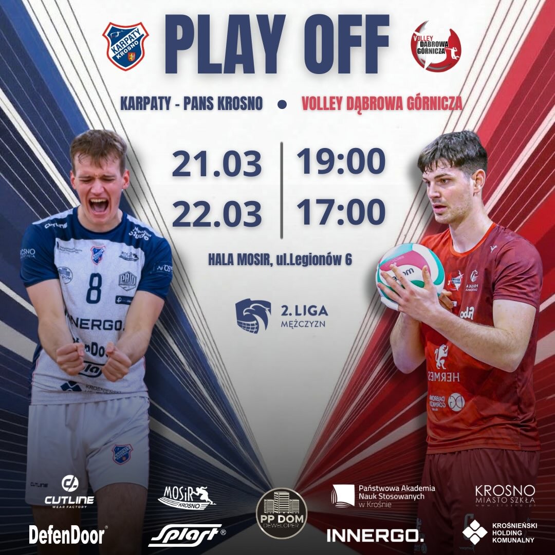 Dziś zaczynamy walkę w fazie play off i chcemy rozpocząć ją razem z Wami na trybunach. Zróbmy atmosferę, która poniesie nas do pierwszego zwycięstwa. 1 MECZ FAZY PLAY OFF z VOLLEY HERMES DĄBROWA GÓRNICZA Hala MOSiR, ul.Legionów 6 godzina 19:00 Na takie mecze pracowaliśmy cały sezon. Zrealizowano przy pomocy finansowej Miasta Krosna. 21 marca 2026 Czytaj więcej...
